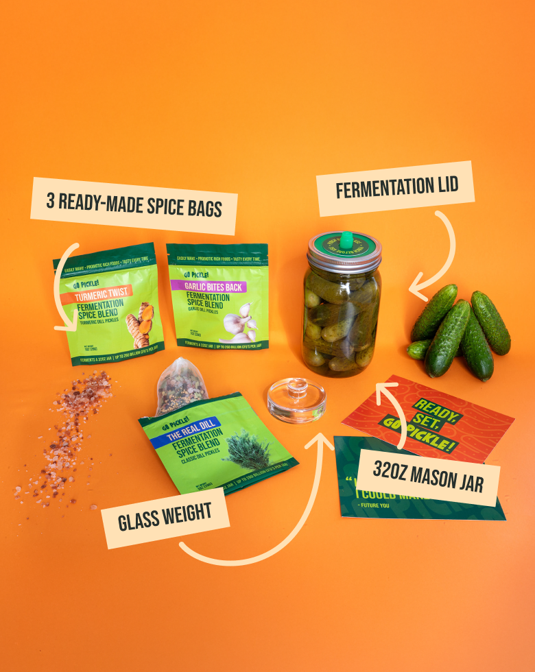 Add water and one of our pre-packed spices bags - Classic Dill, Garlic, or Turmeric.